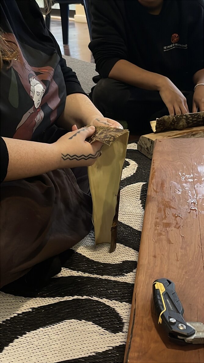 Aute, also known as the paper mulberry tree, holds a special place in the traditions of many Pacific cultures. Under Ataarangi’s expert guidance, we learned the intricate process of transforming the bark of the Aute tree into Aute cloth—a practice that requires patience, skill, and deep respect for the taonga that nature provides.